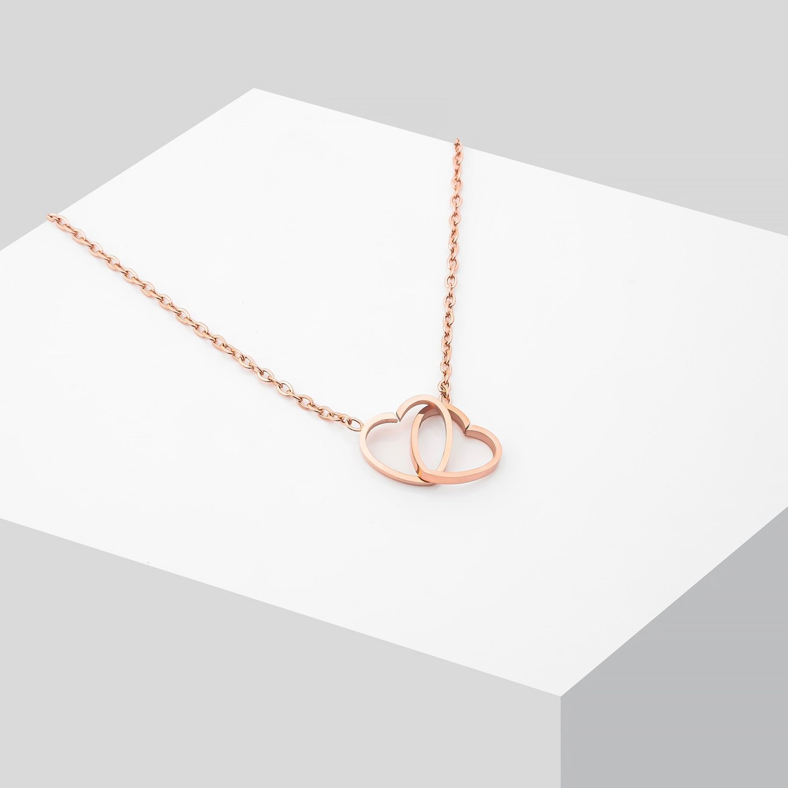The Double Heart necklace embodies romance and connection. with two hearts that flow harmoniously into each other. Sparkling details and perfect light reflection make this necklace a timeless piece of jewellery. An elegant gift that symbolises deep feelings and timeless elegance.